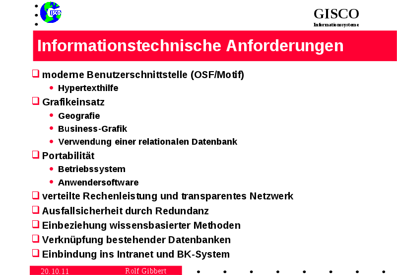 Im einzelnen wurden die folgenden informationstechnischen Anforderungen beim Entwurf des Systems berücksichtigt:
